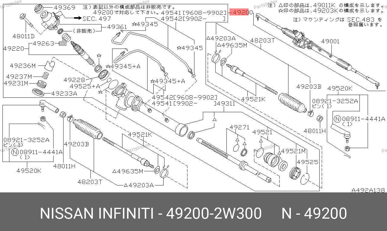 492002W300 NISSAN Рулевая рейка с тягами гидравлическая j21021nw