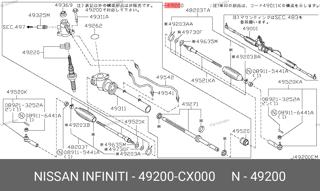49200CX000 NISSAN Рулевая рейка с тягами гидравлическая j20441nw
