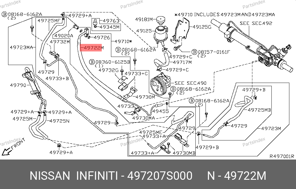 49720-7S000 NISSAN Напорный шланг от насоса к рейке hph0137