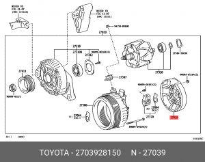 27039-28150 TOYOTA Крышка генератора пластик