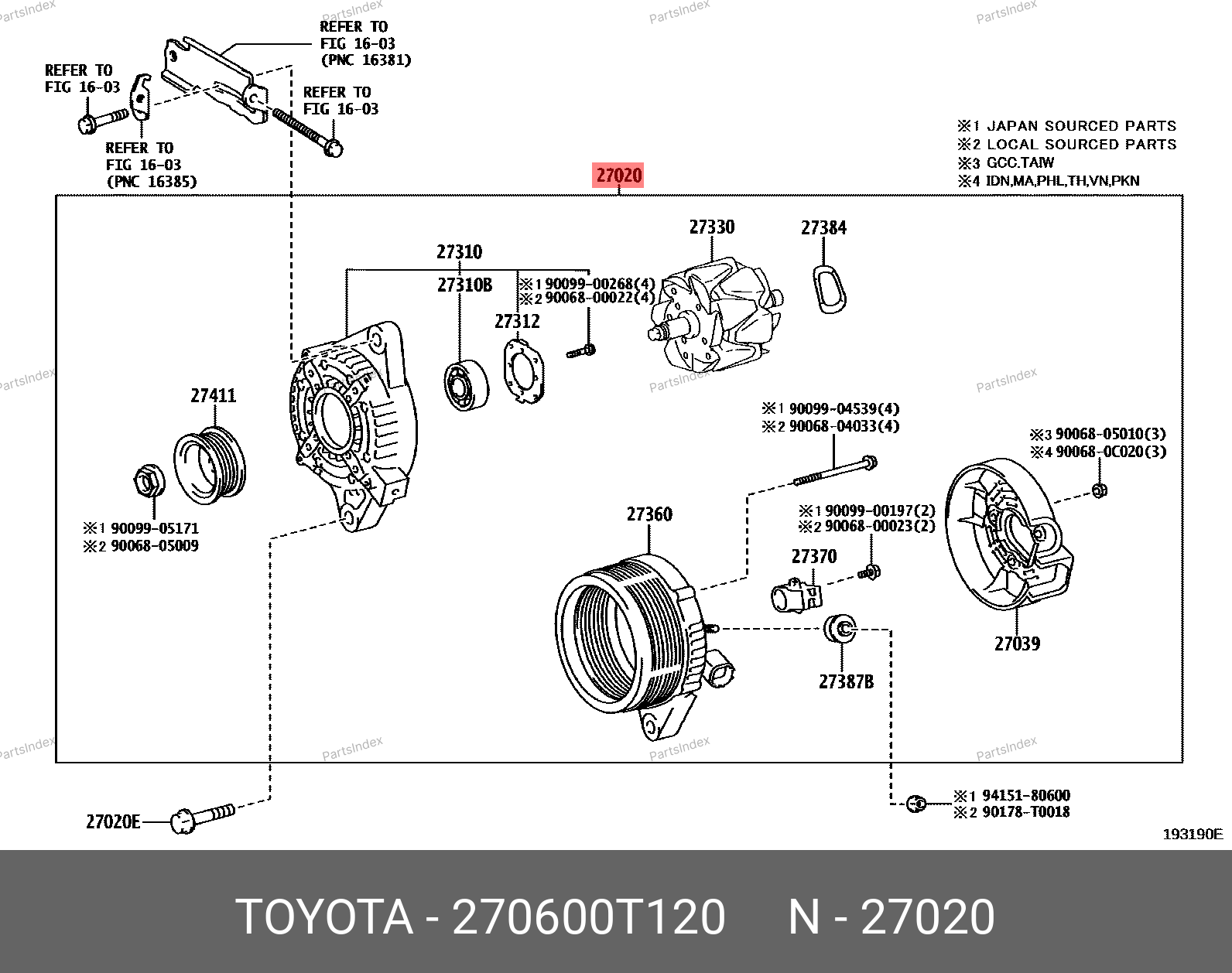 27060-0T120 TOYOTA Генератор