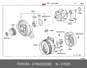 27060-20280 TOYOTA Генератор cо шкивом 6 ручьев
