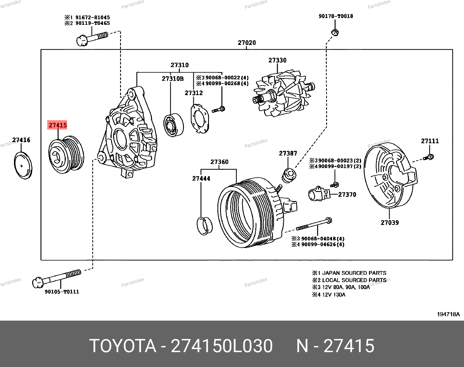 27415-0L030 TOYOTA Шкив обгонный генератора