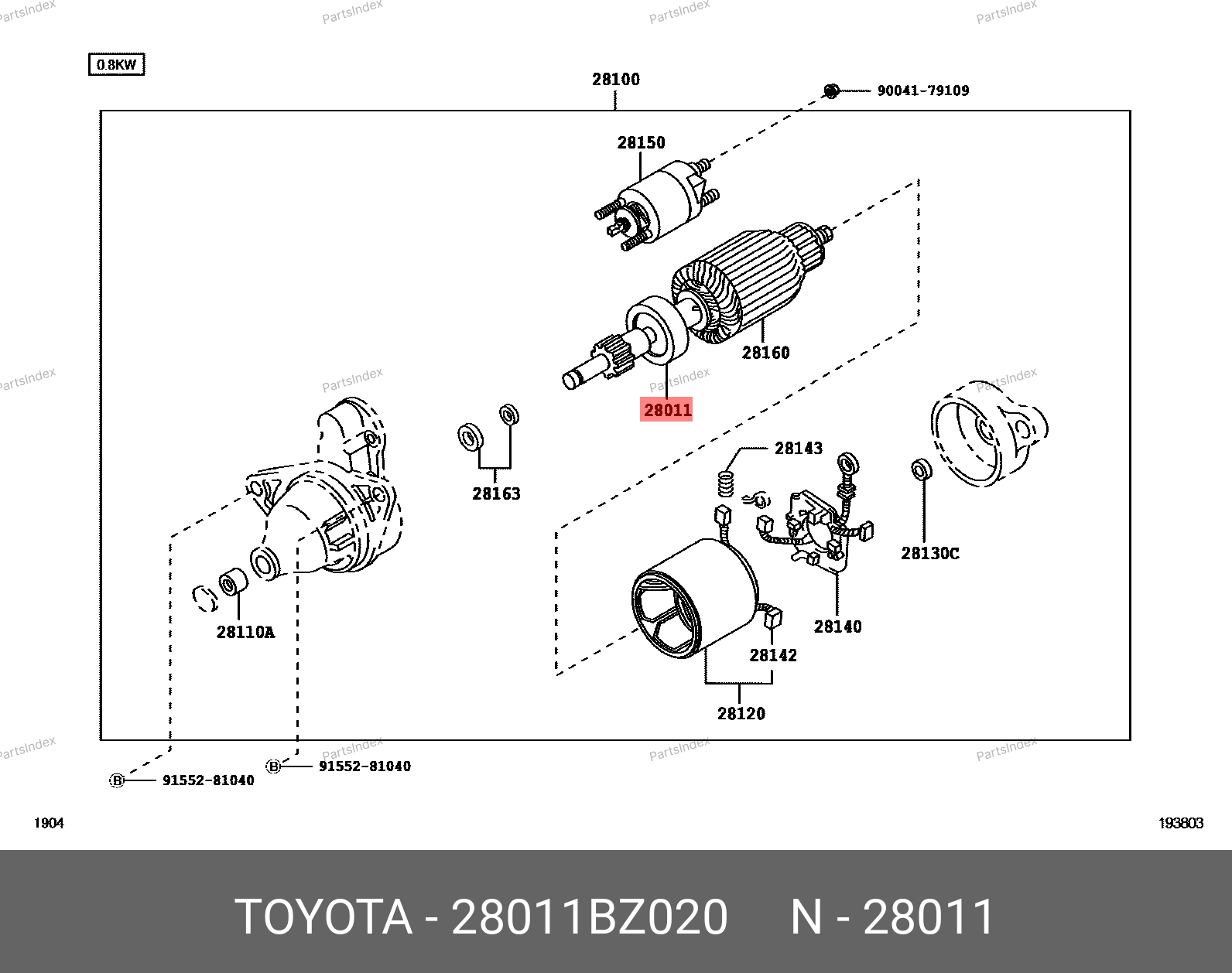 28011-BZ020 TOYOTA Бендикс стартера