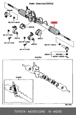 44250-12290 TOYOTA Рулевая рейка с тягами гидравлическая j20521nw