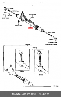 44250-33251 TOYOTA Рулевая рейка с тягами гидравлическая j20221nw