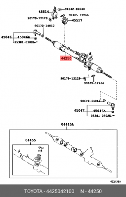 44250-42100 TOYOTA Усиленная рулевая рейка с тягами гидравлическая r24531hg