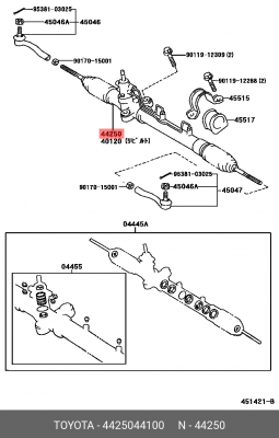 44250-44100 TOYOTA Рулевая рейка с тягами гидравлическая j20301nw
