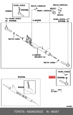 45046-29325 TOYOTA Наконечник рулевой hqe0116