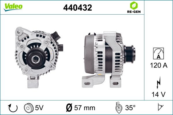 440432 VALEO PHC Генератор cо шкивом 5 ручьев