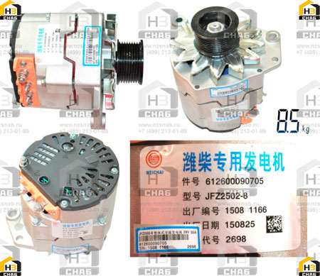 612600090705 WEICHAI Генератор (612600090705) JFZ2502-8 (28V,55A)