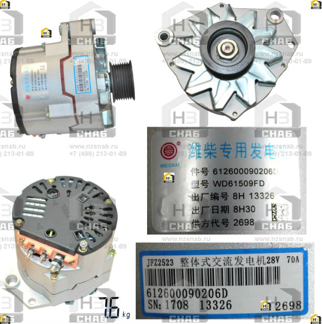 61260090206D WEICHAI Генератор JFZ2523 (28V,70A) 61260090206D